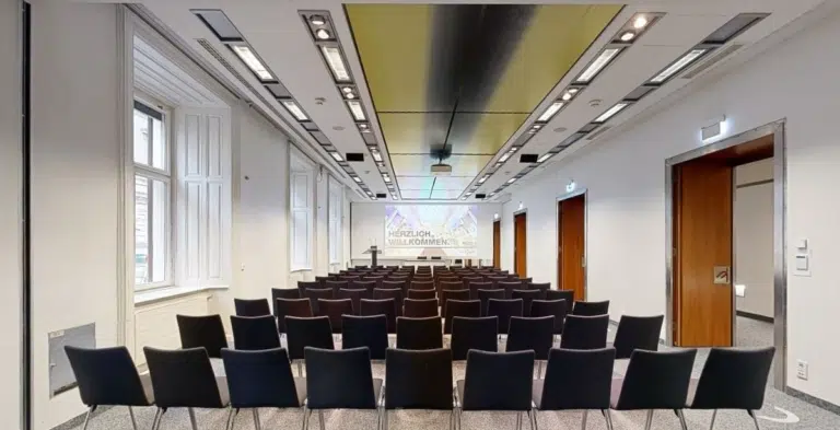 The 19 rooms of different sizes at Congress Graz make it possible to hold events of different sizes and types. From symposia to exhibitions, from galas to balls or concerts, the rooms can be utilised. A total area of 2,900 m² is available, the largest room being the Stefaniensaal, which with its unique concert acoustics is a popular venue for musical performances of all kinds. There are also 6 artists’ dressing rooms (3 orchestra dressing rooms with 44 – 50 m², 2 soloists’ dressing rooms with approx. 20 m² each and 1 conductor’s dressing room with approx. 40 m²) available for use.